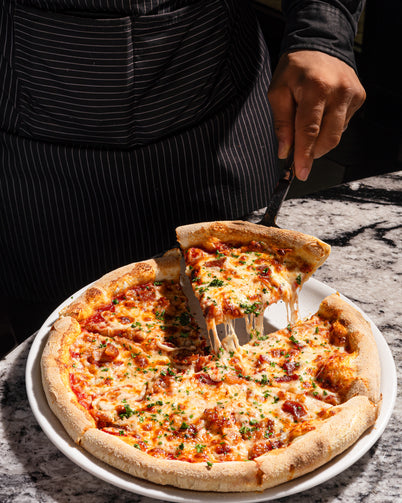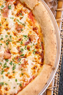 Pomodoro, mozzarella, tocineta, ajo y perejil